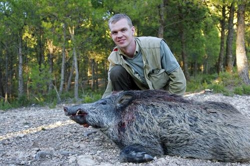 Olof fällde denna framrusande galt liggande på 0.5 m avstånd.