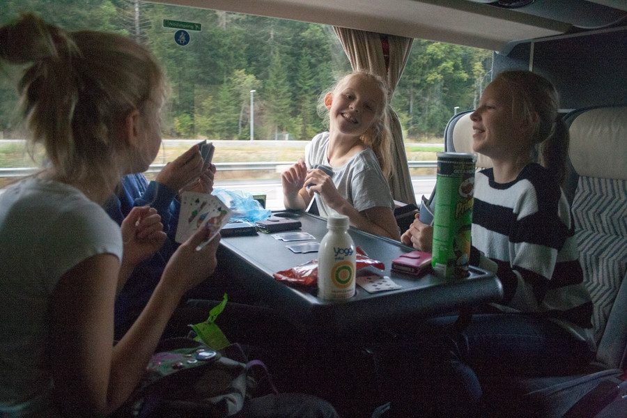 Nu åker vi hemåt med resten av Göteborgsungdommarna i vår coola dubbeldäckarbuss, magarna dör nästan efter att ätit 25 cm mackor på matstoppet vid Laxå.