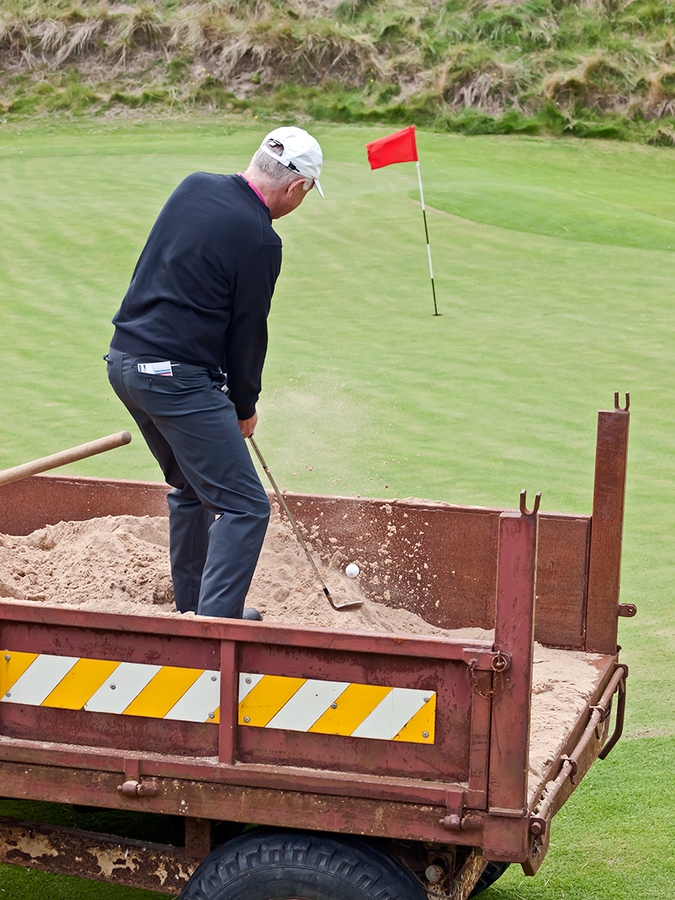 Det finns en korthålsbana (Igelkotten) men den håller inte “mästerskapklass”. Det är ju en “järnbana” där inte de utslags(!)givande längre klubborna behövs. |