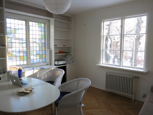 En solig vinterdag tar jag sikte mot det stora huset på höjden. Husets ägare, Stig, bor på första planet, och han är en väldigt pigg 90-åring som dagen innan mitt besök varit på herrklubbens årliga, väldigt blöta, julfest. Han lyckas ändå ta sig upp ur sängen för att bjuda på lite anekdoter från förr.Detta är ett hus med historia, och han köpte huset för över 40 år sedan av dåvarande chefen på Stora Teatern. På den tiden användes det nedre våningen för att bjuda dåvarande stjärnor, teaterns gästsångare och skådespelare på storslagna fester.