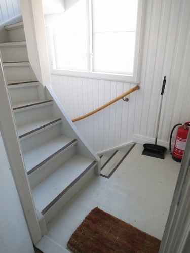 Vi tar nu trappan upp och kliver in den övre hallen och in i husets hjärta, vardagsrummet. Man slås omedelbart av ljuset och rymden denna soliga dag som jag hälsar på.
