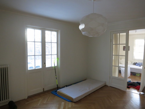 Vi går vidare in i nästa nyligen tillkomna rum då en vägg har slagits upp. Marius har övergivit madrassen och här väntas en ny snabb hyregäst att få flytta in vid årsskiftet.