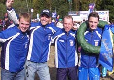 Rickard, Martin, Thomas och vår coach Lars Andersson kommer framspringandes och det känns bara fantastiskt bra.