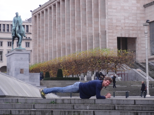 Vad är nu plankan frågar ni er. Plankan, mina damer och herrar, är er väg till en vältrimmad kropp och en bålstabilitet som du tidigare bara drömt om. Ert claim to fame. Det är 15 minuter om dagen som kommer förbättra er uthållighet och öka er löpkapacitet avsevärt, hävdar jag. Jag har själv aldrig varit så stark som det året jag vann planktävlingen. Och, det bästa med plankan är att den kan utövas i princip var som helst. Jonas, dagens plankmodell, har tex valt att utföra delar av sin planka i Europas huvudstad, men det går precis lika bra i hemmets trygga vrå.