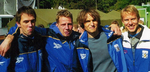 Fotot i omklädningsrummet? En bild på andralaget med Arvid, undertecknad, Tårtan Hederskog och en lyckligt gråtande slutman. Fotot finns i vårt arkiv: FOTO“