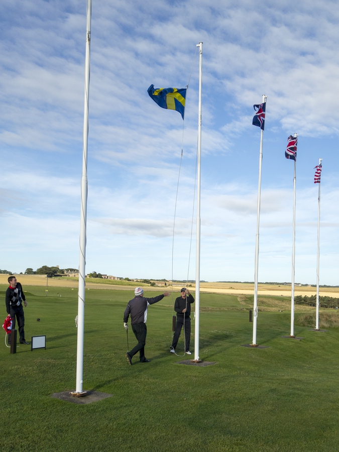 Lördagen kom med strålande sol och bara lite vind. Nu ställdes färden 20 km österut till byn Crail som ligger vid Nordsjökusten 15 km söder om St Andrews. Väl framme vid Crail Golfing Society hedrades truppen med att den svenska flaggan hissades.