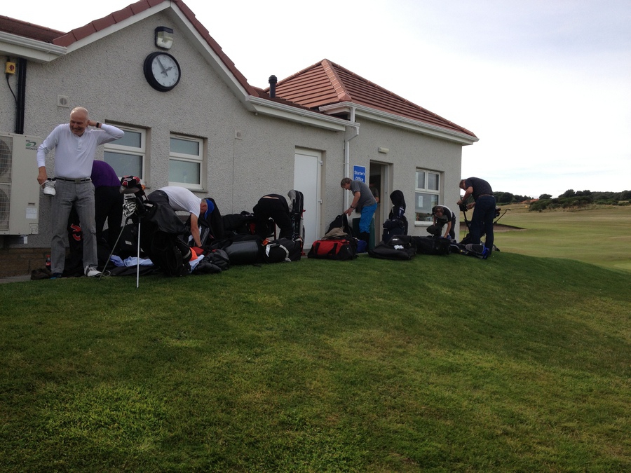 Det var tolv förväntansfulla tävlande som landade på Edinburgh flygplats torsdag lunch. Dock var det nära att truppen blivit decimerad då McWing drabbats av akut njurstensanfall dagarna innan avfärd och kunde ge klartecken för spel först på avresemorgonen. Till detta skall tilläggas att McSlice hade åkt på en eländig inflensa och var knappt pratbar. Mycket skall dock till för att dessa grånade kämpar, som hade sin topp som orienterare på 70-talet, när orden medeldistans och sprint inte var uppfunna, skall backa ur. Första ronden av The Trophy avverkades på Kinghorn GC.