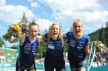 De svenska damerna gjorde tre mycket fina lopp och motståndarna var efter redan på första sträckan av Hanna Lundberg. Vår Sara kunde ta det bästa vägvalet på en långsträcka och i ensam majestät ge Tove ett gott försprång. Grattis till er tjejer! Silver tog Schweiz där Simona sprang sista...