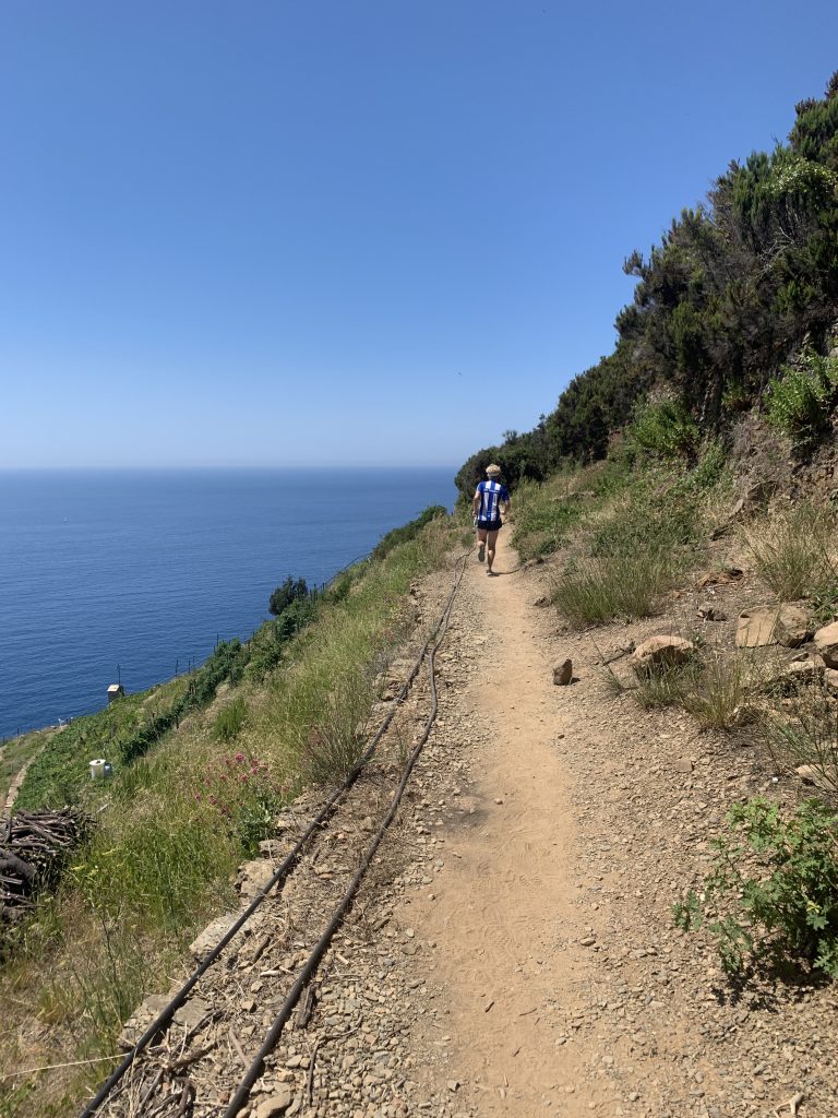 Ja, vi sprang genom Cinque Terra – ett fint område med fem små byar längs kusten här i Italien. Det blev långt. Vi körde ett ultralångsprintdistanspass, ett nytt träningskoncept vi testade. Vi började i Monterosso och sprang en sprint i den byn, sen sprang vi över bergen till Varnezza där vi sprang en sprint till. Vidare till tredje byn – Conrniglia – en sprint där och så vidare i alla fem byar.