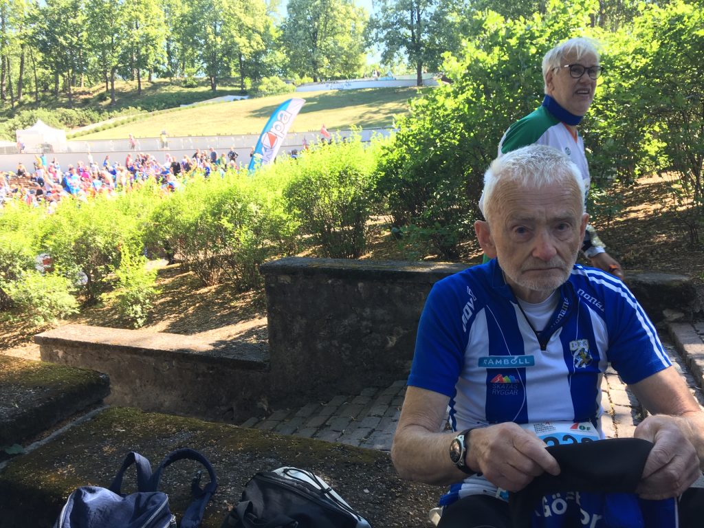 Nja – skogskvalet på dagen med rejält långa banor (5-6 km för oss gubbar) gör att träningen blir några längder i hotellets simbassäng och Bastu. Vi hoppar de dubbla passen nu när vi är på mästerskap. 😉