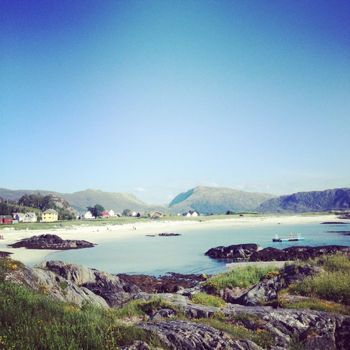 I Norge jobbar man hälften så slappt för den dubbla lönen. Som tur är jobbar man 38h/v och slutar därför kl 15 varje dag, så jag har mycket energi kvar att göra sig av med uppe på fjellet. Ett wifi, ett 30-tal turleder och fina stränder är alternativen till sysselsättning på ön. Otroligt inspirerande miljö att ta ut sig i, man får dock kolla väderrapporten för dimman och regnet kommer fort har jag märkt.
